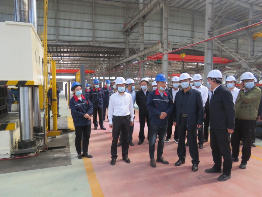 “五一”假期,帝爾公司為確保東風公司主機廠產品交付,仍在緊鑼密鼓加班生產。在車間現場,重型沖壓設備運行有序,機器人揮舞著手臂,進行精準切割作業。黃劍雄仔細察看生產工藝,并詢問公司研發投入、銷售收入、產品性能、公司發展前景規劃等情況。帝爾公司總經理賈留根就黃市長提出的問題進行了詳細介紹。